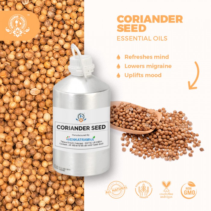 Coriander essential oil is extracted from the seeds of the coriander plant through steam distillation, capturing its potent aroma and therapeutic properties.
