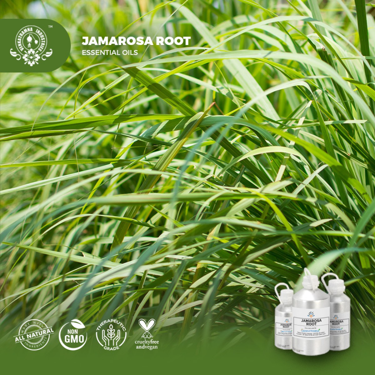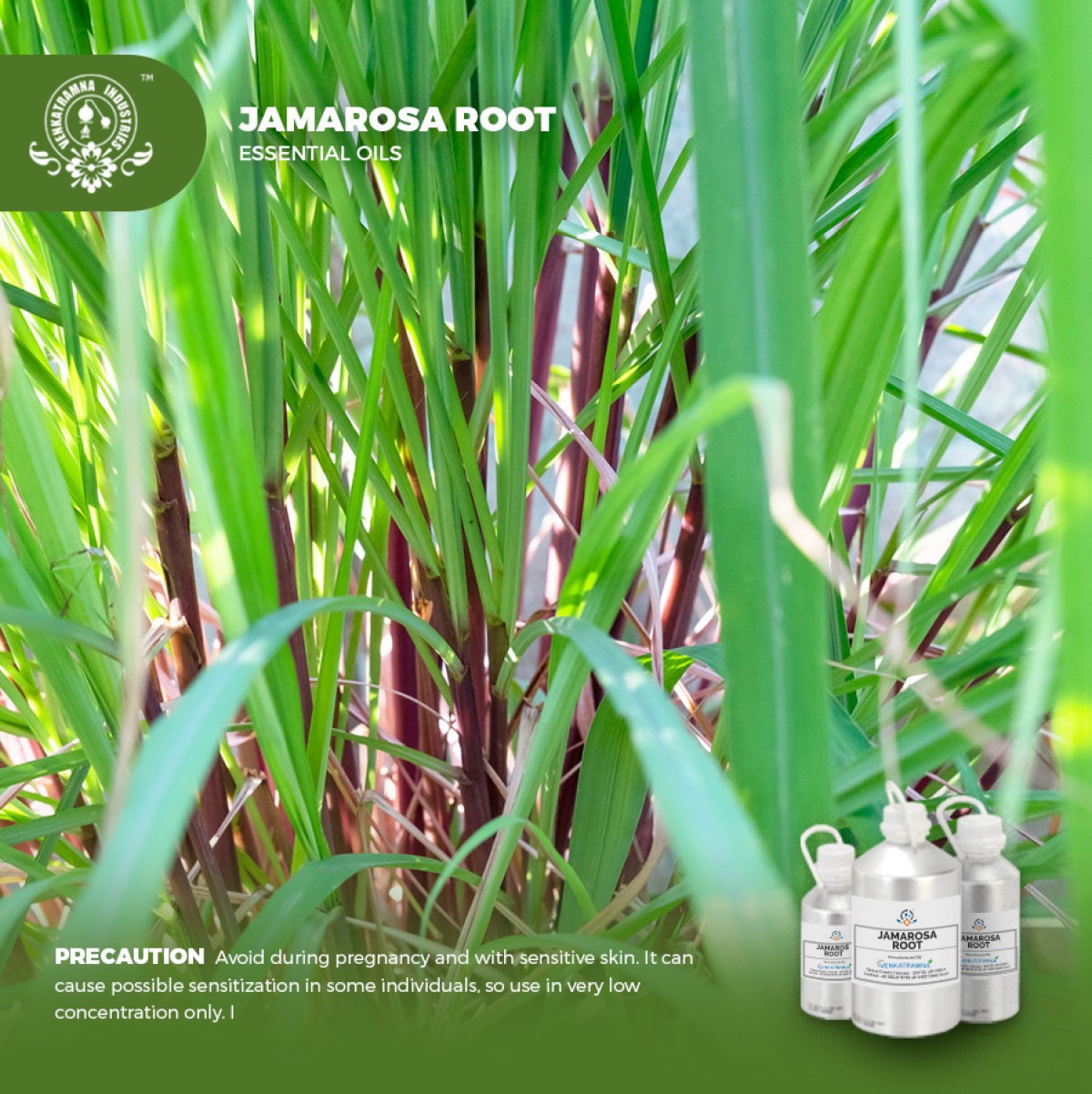 Jamarosa Root Oil is extracted from the root part of the plant through steam distillation process, it mostly finds usage as a natural fragrance and mainly comprises a blend of geraniol and geranyl acetate.