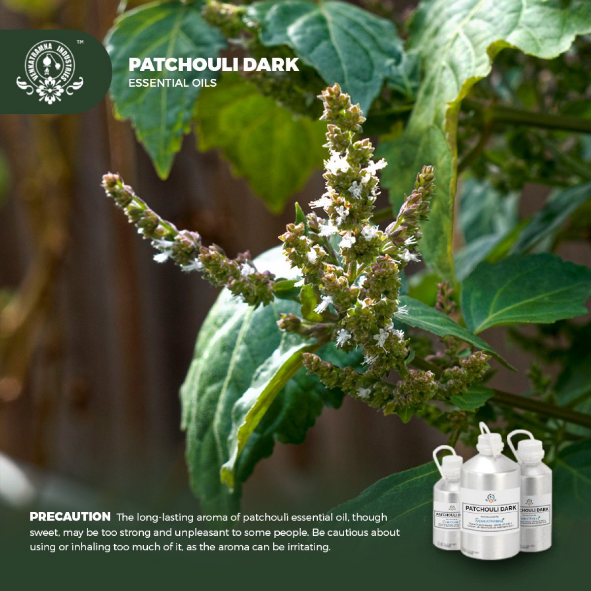 Patchouli Essential Oil extracted by the process of steam distillation of the dried leaves, which are necessary for rupture of its cell walls by steam scalding, light fermentation, or drying. Patchoulol, a sesquiterpine alcohol is the main chemical component of patchouli oil.