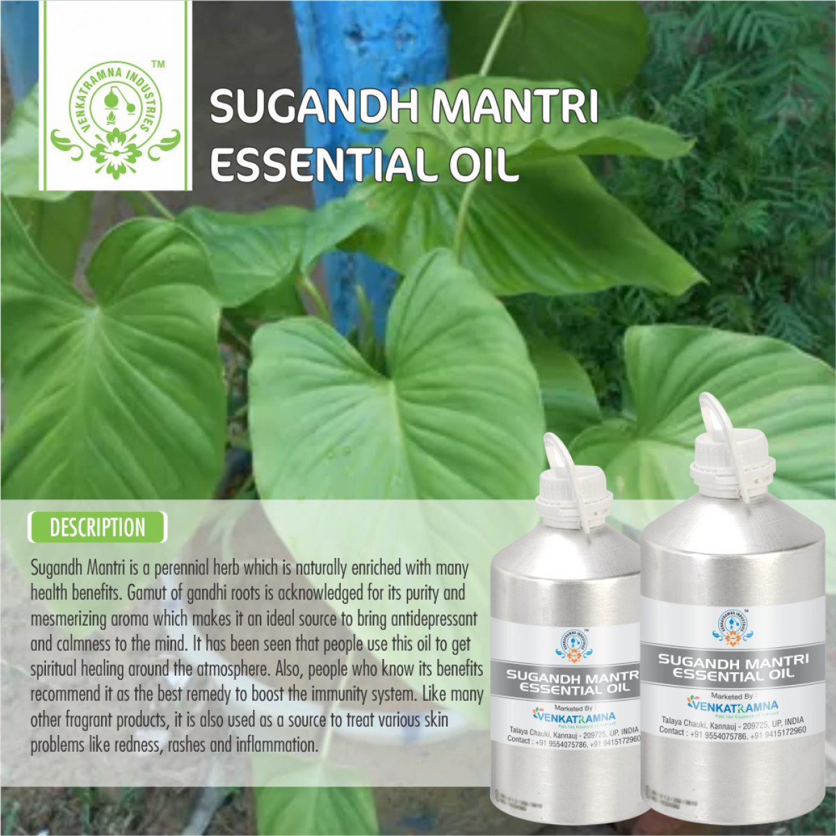 Sugandh Mantri is a perennial herb which is naturally enriched with many health benefits. Our gamut of gandhi roots is acknowledged for its purity and mesmerizing aroma which makes it an ideal source to bring antidepressant and calmness to the mind. It has been seen that people use this oil to get spiritual healing around the atmosphere. Also, people who know its benefits recommend it as the best remedy to boost the immunity system. Like many other fragrant products, it is also used as a source to treat various skin problems like redness, rashes and inflammation. Honestly, our offered collection of sugandh mantri is highly-effective and does not provide any side effects after use.