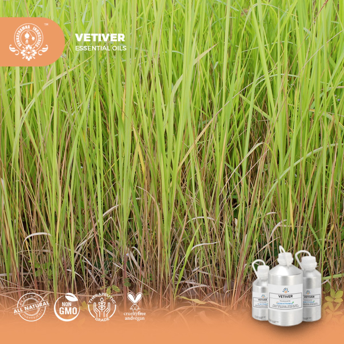 Vetiver essential oil (VEO) is produced by steam distillation of the aromatic roots of the tropical grass Vetiveria zizanioides, which is native to the Indian subcontinent. VEO has a long history of use primarily due to its insect-repellent property and persistent green-woody note. Scientific studies have evaluated its insect-repellent, anti-inflammatory, antioxidant, and metabolic activities.