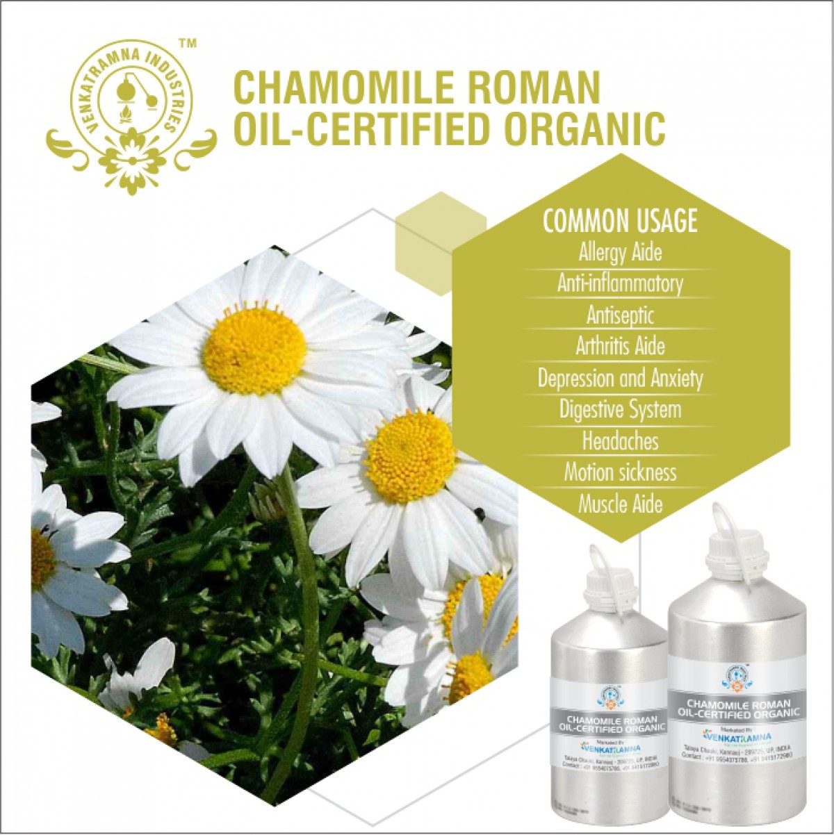 Chamomile has been used for the following purposes, in pharmaceutical and ayurvedic industries to treat the following medical conditions: