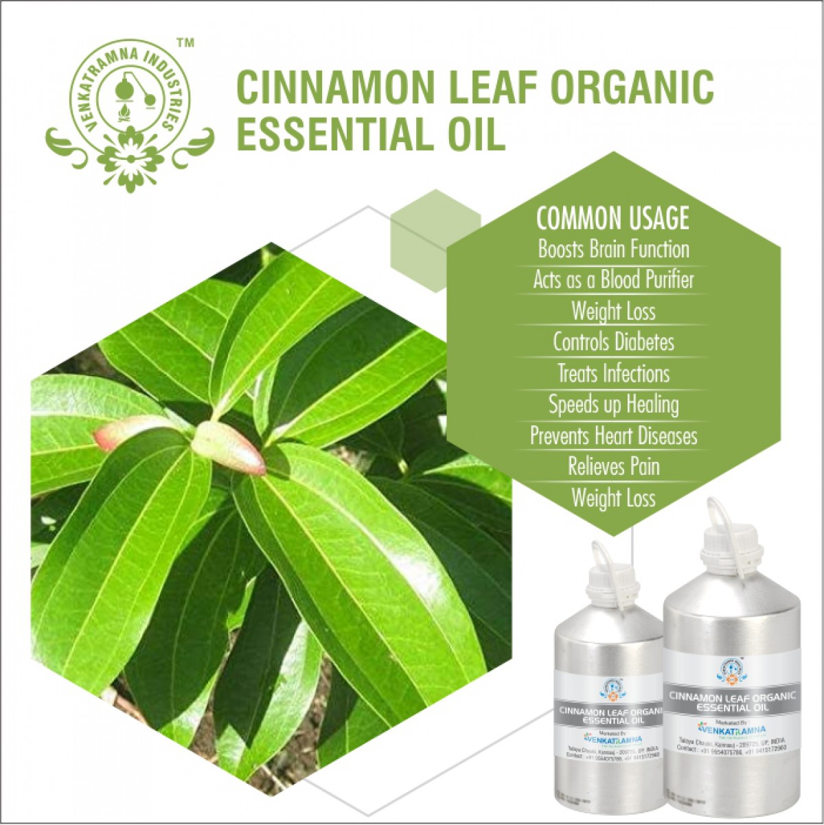 Essential oils of cinnamon bark and leaf are widely used in food flavours, cosmetics and pharmaceuticals. Cinnamon is mainly used in the aroma and essence industries due to its fragrance, which can be incorporated into different varieties of foodstuffs, perfumes, and medicinal products. The Oil is rich in monoterpenoids and phenyl propanoids. (E)-Cinnamaldehyde is the main component of cinnamon bark oil and eugenol the main component of the leaf oil. Benzyl benzoate chemotypes of cinnamon bark and leaf oils and linalool chemotype of cinnamon leaf oil were also reported. Essential oils of other parts such as fruit, fruit stalk, flower, bud, leaf petiole of cinnamon have also reported having medicinal and pharmacological benefits.