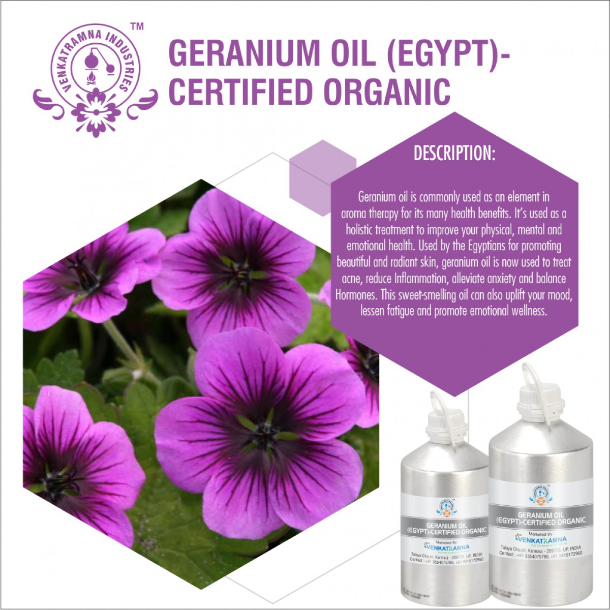 Geranium essential oil has been used to treat health conditions for centuries. It is beneficial for a number of conditions, such as anxiety, depression, infection, and pain management. It’s thought to have antibacterial, antioxidant, and anti-inflammatory properties.