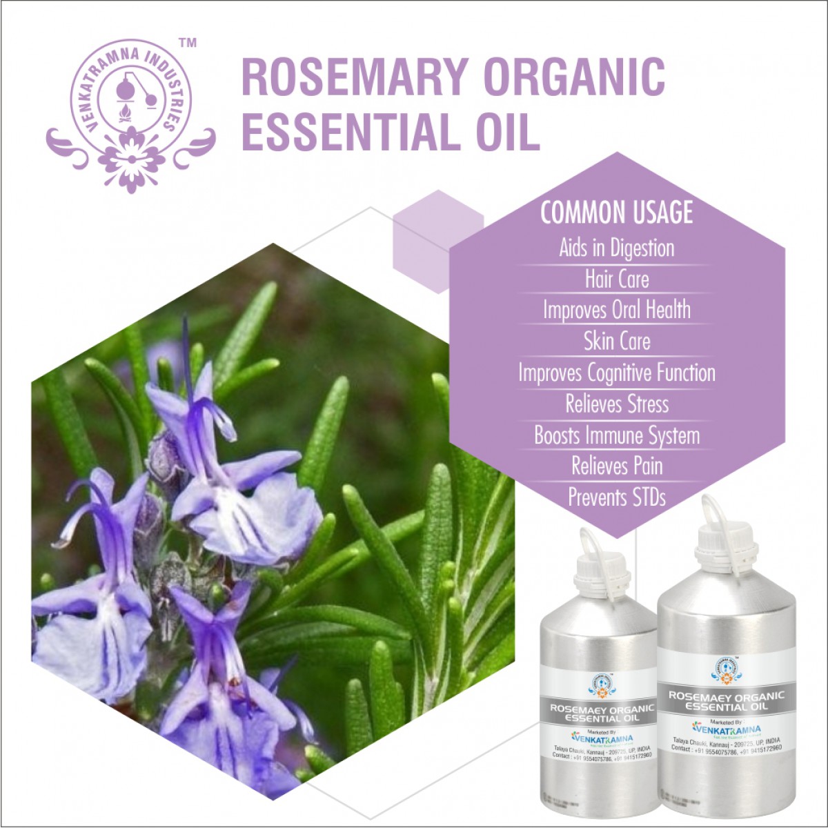 Rosemary essential oil is often an ingredient in bath salts, bath oils, liniments, gels and ointments. It can also be found in cosmetic products such as lavender water, cologne water and as fragrance in soaps. The essential oil of rosemary is widely used for hair care as it nourishes the hair, promotes hair growth and helps against dandruff. It is also recommended in hair-loss treatment as it is believed that it has similar function to Minoxidil, an antihypertensive vasodilator medication, which revitalizes hair follicles that are damaged. Rosemary oil widens blood vessels and opens them and makes blood and nutrients more available to the follicles which are then stimulated into producing new hair. In 2015, one study conducted on patients with pattern hair loss (androgenic alopecia) compared the effectiveness of rosemary oil vs. 2% Minoxidil in the treatment of adrogenic alopecia. It was discovered that rosemary oil was as effective as 2% Minoxidil and that patients in the rosemary group experienced less side effects compared to patients in the Minoxidil group.