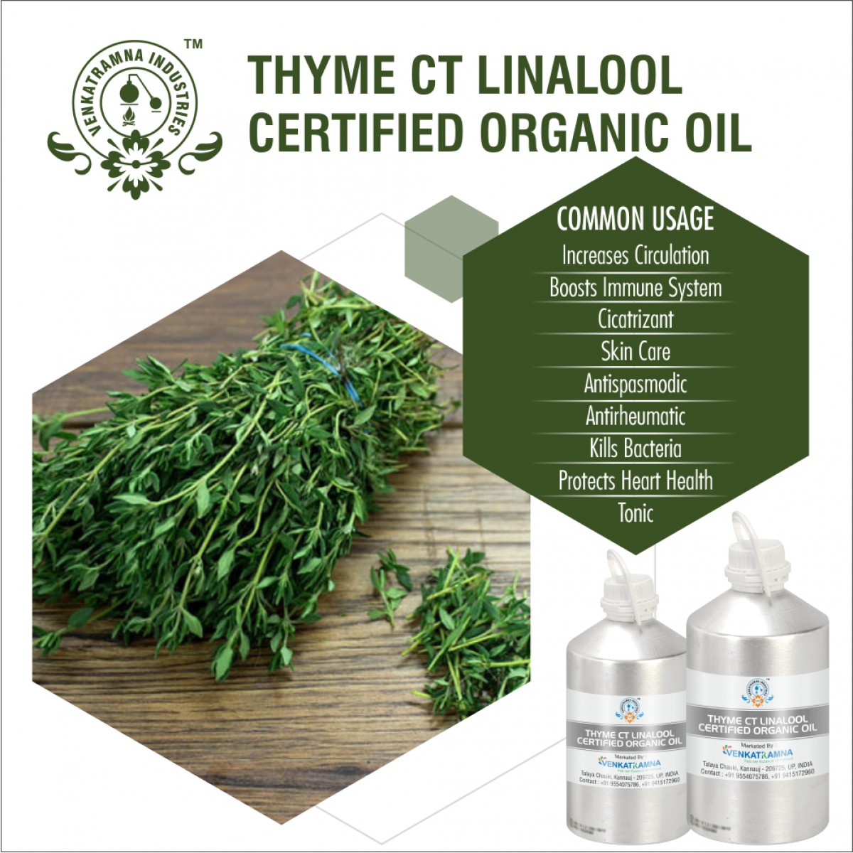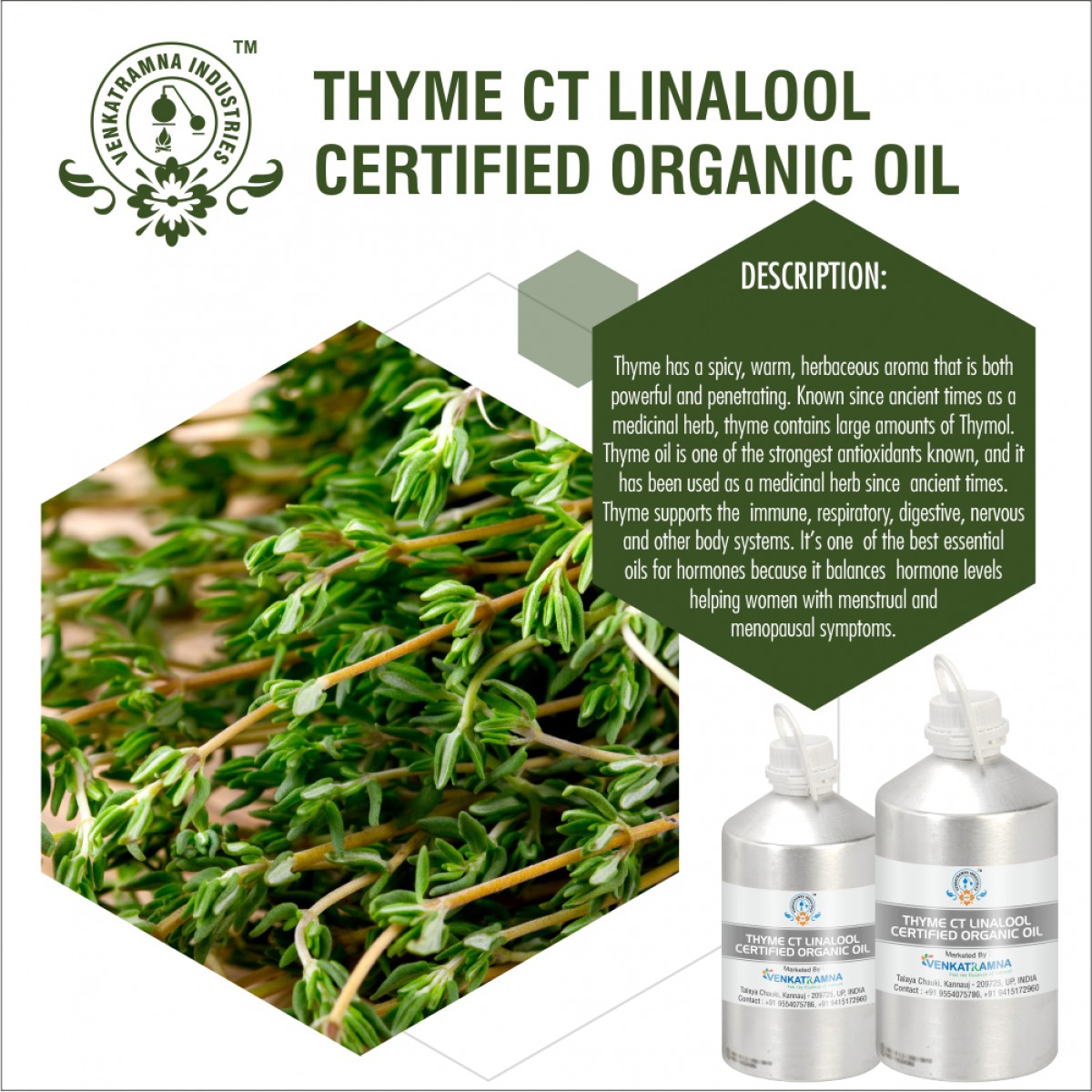 Volatile oils of thyme are among the main essential oils used in the food industry and in cosmetics as preservatives and antioxidants and as spice, home remedy, drug, perfume, and insecticide