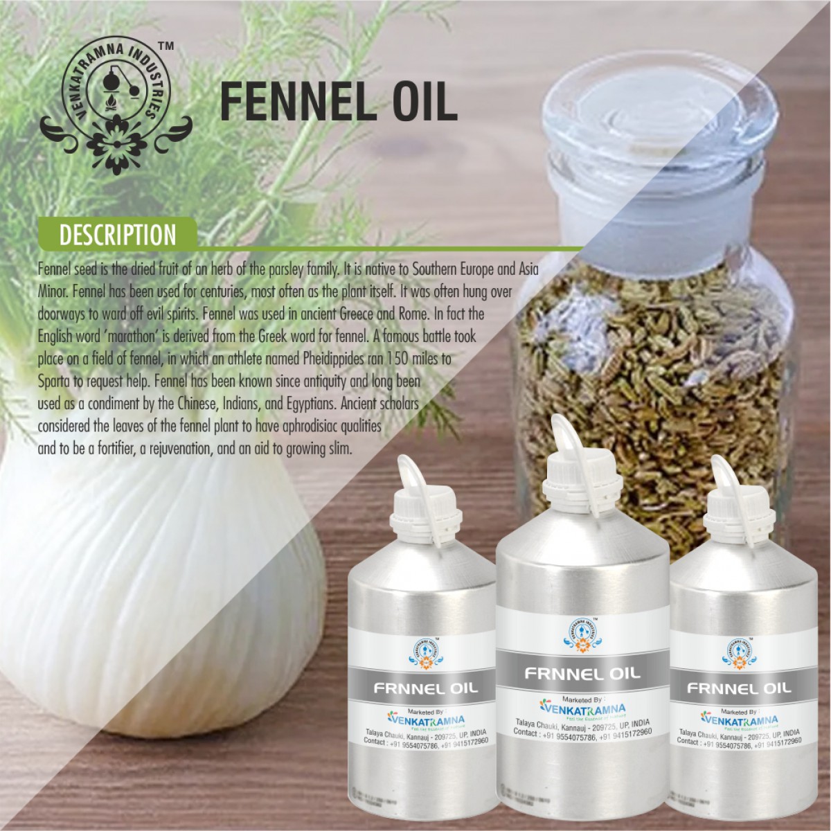 Foeniculum vulgare (Apiaceae) commonly known as fennel is a well-known and important medicinal and aromatic plant widely used as carminative, digestive, lactogogue and diuretic and in treating respiratory and gastrointestinal disorders. Its seeds are used as flavorings in baked goods, meat and fish dishes, ice cream, alcoholic beverages and herb mixtures.