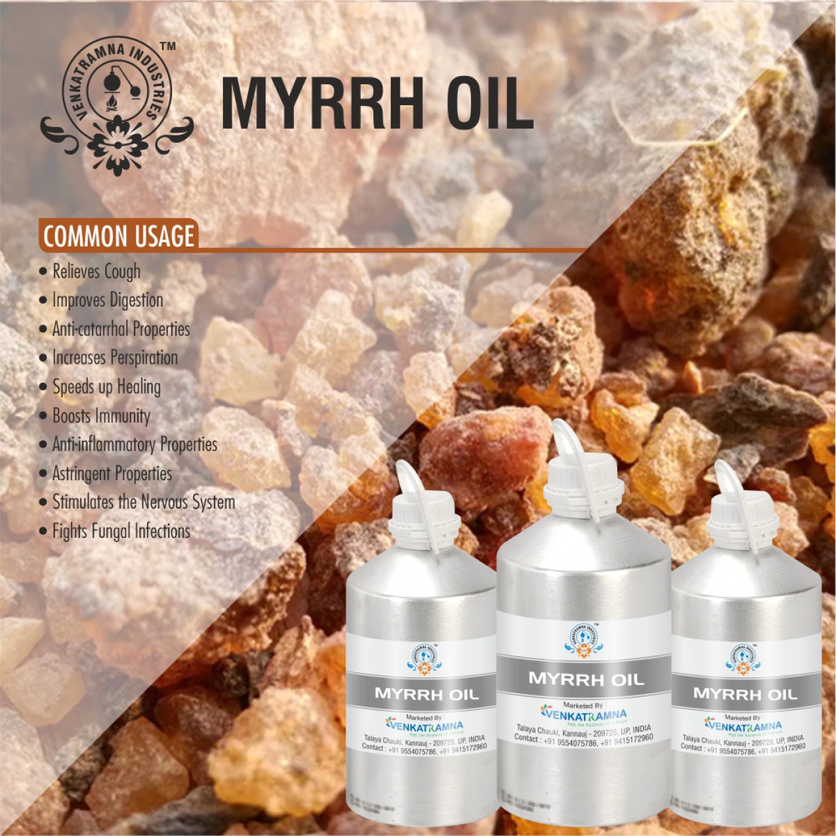 Myrrh Essential Oil is popular in aromatherapies, and is well known to offer relief for colds, congestion, coughs, bronchitis, and phlegm. Inhaling its sedative scent is known to lift negative moods, promote the feeling of being grounded, and encourage the feeling of spiritual awakening.