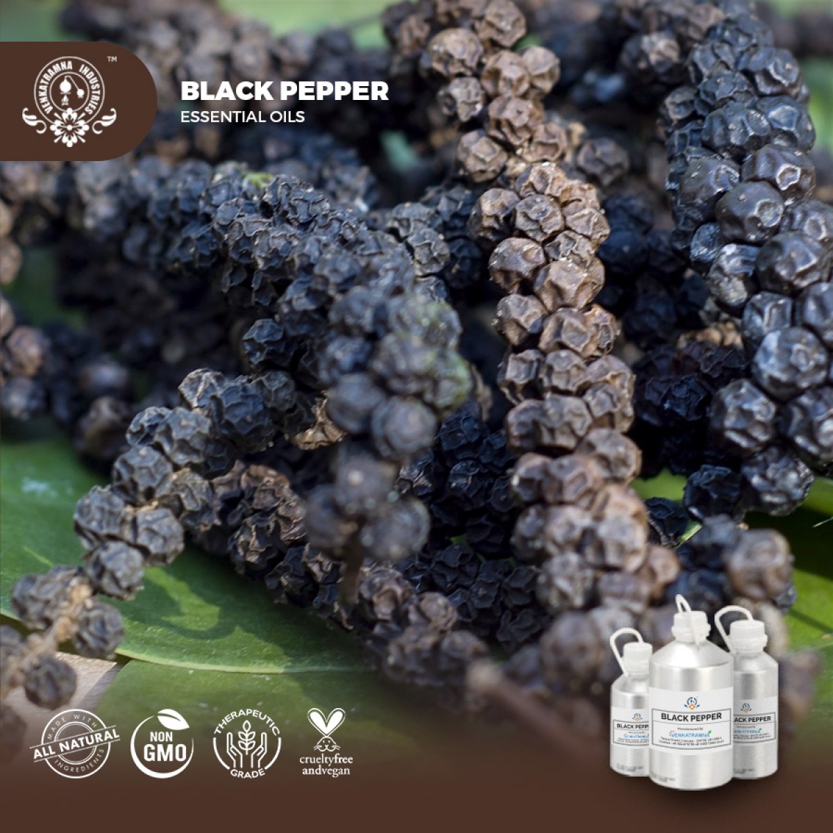 Therapeutically, Black Pepper essential Oil is popularly known improve circulation and can help to ease the pain of aching muscles. It is traditionally popular for its culinary applications that account for its numerous health benefits. It is best known for its ability to spice up meals and enhance the taste of foods.