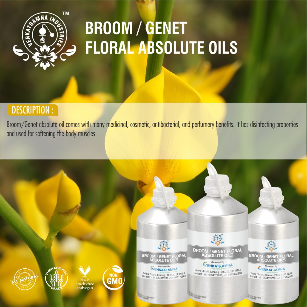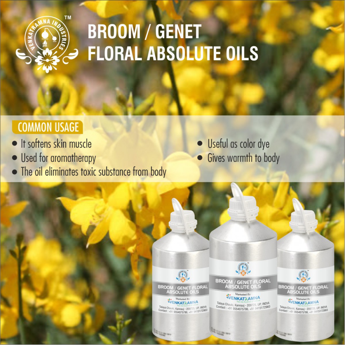 The plant is used as an ornamental plant in gardens and in landscape plantings. It has gained the Royal Horticultural Society’s Award of Garden Merit. In Bolivia and Peru, the plant is known as Retama and has become very well established in some areas. It is one of the most common ornamental plants, often seen growing along sidewalks in La Paz. Retama has made its way into the ethno botany of the indigenous Asmara and Quechua cultures. The plant is also used as a flavoring and for its essential oil, known as genet absolute. Its fibers have been used for cloth and it produces a yellow dye. This absolute oil is highly effective in eliminating toxic substances from your body including excess bile, uric acid, fats acids as well as salts. Due to its floral cologne, it is extensively used in aroma therapy for treating pain, stress, mental fatigue and depression. It is also useful as a color dye. It is used as a fragrance in soaps and cosmetics.