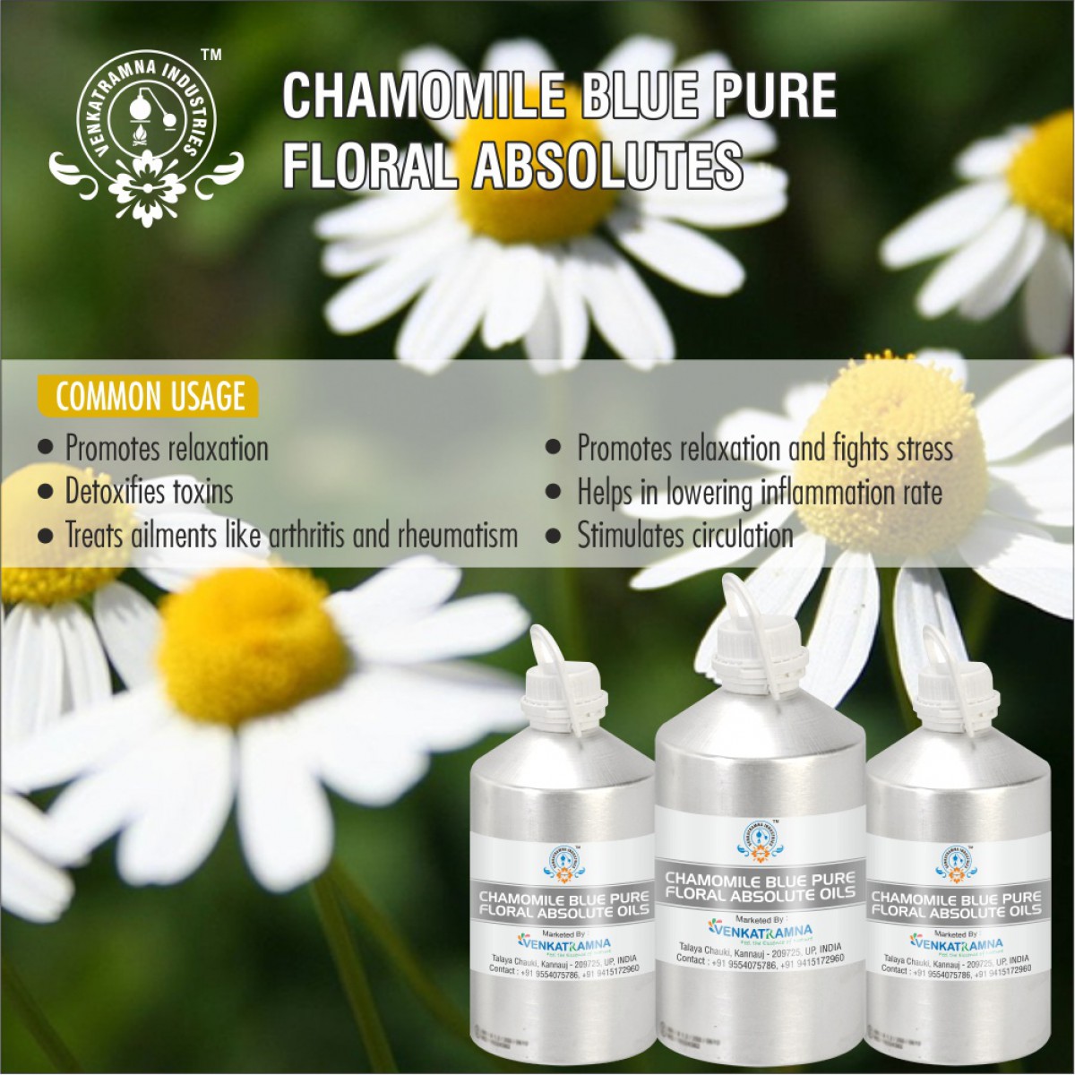 Chamomile has been used for the following purposes, in pharmaceutical and ayurvedic industries to treat the following medical conditions:
