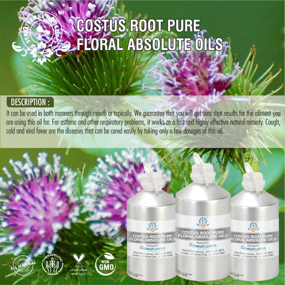 The roots have an acrid, strong and sweet aromatic odour and bitter taste with neutral potency. The root of this plant is credited with anodyne, anti-arthritis, aphrodisiac, astringent, stimulant, digestive, diaphoretic, deodorant, antiseptic, diuretic, emmenagogue, expectorant, febrifuge, spasmodic, vermifuge and tonic properties. In India, it is cultivated in the Himalayas as a medicinal plant and for its use in perfumery and for preserving furs. It is used singly or as an ingredient in the drug formulations prescribed for the treatment of cough, bronchitis, colic, dental trouble, diarrhoea and dysentery, liver dysfunction, pulmonary disorders, fever, flatulence, hair wash, headache, hysteria, chest complaints, nervous disorders, irregular menstrual problems, promoting urination and rheumatism. The plant is also believed to help prevent greying of hair. Dry roots (Kuth, Costus) are strongly scented and yield an aromatic oil used in making insecticides. The roots contain an alkaloid, ‘saussurine’, which is medicinal. It is used in skin diseases, asthma, high blood pressure and stomach ailment. Also used as carminative, prophylactic and sedative. Dry roots constitute the drug ‘Saussurea’. In Kashmir the roots are used to protect woollen fabrics. Kuth is also distilled for its essential oil.
