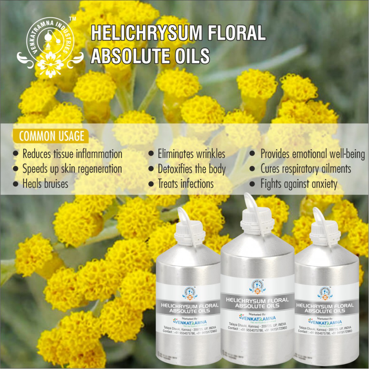 Helichrysum essential oil is used in inhaler with drops of black pepper when suffering from sore throat and cough. Blend of Helichrysum essential oil Slovenia with alovera gel can be used to rejuvenate skin and give a glowing appearance since it can deal with acute issues.