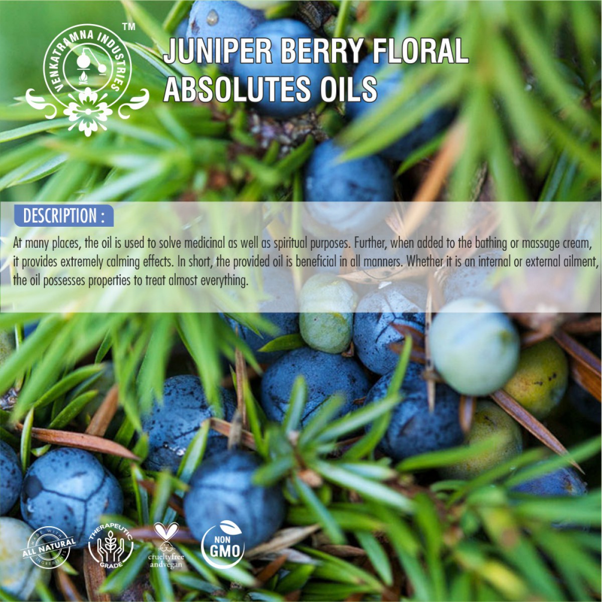 Juniper berries are traditionally used as a powerful detoxifier and immune system booster. Juniper berries themselves are high in flavonoid and polyphenol antioxidants that have strong free radical scavenging abilities. It is high in flavonoids and antioxidants so it fights against free radical damage.