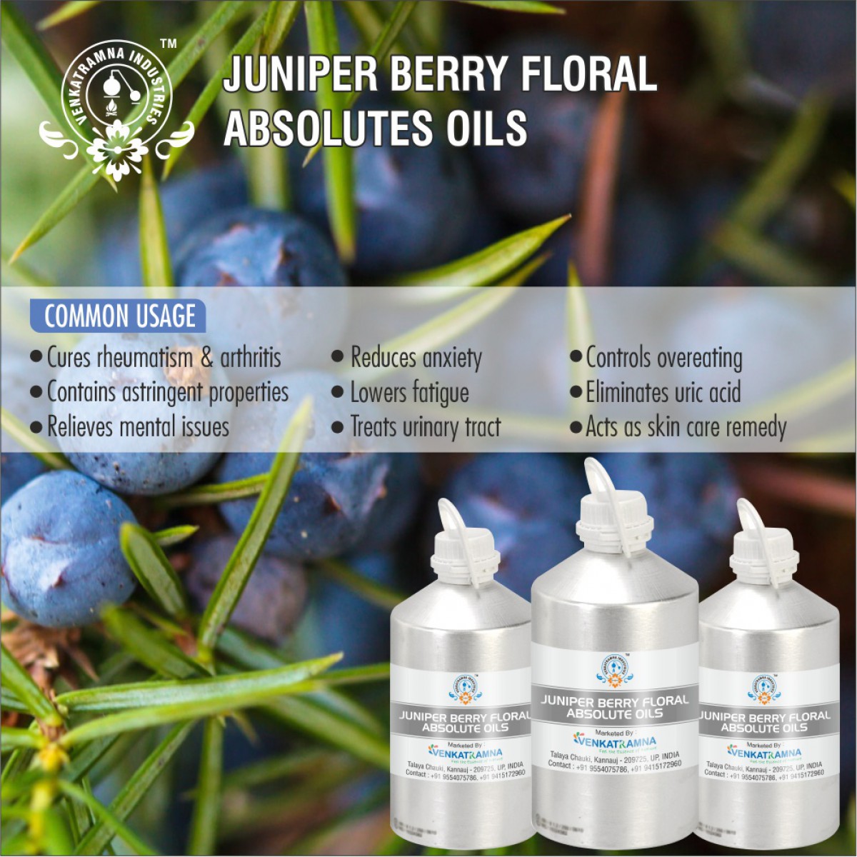 It has a best aroma and medicinal properties that can heal pains in muscles and arthritis. Juniper extract and juniper oil are used in cosmetics including lipstick, foundation, hair conditioners, bath oils, bubble bath, eye shadow, and many other products.