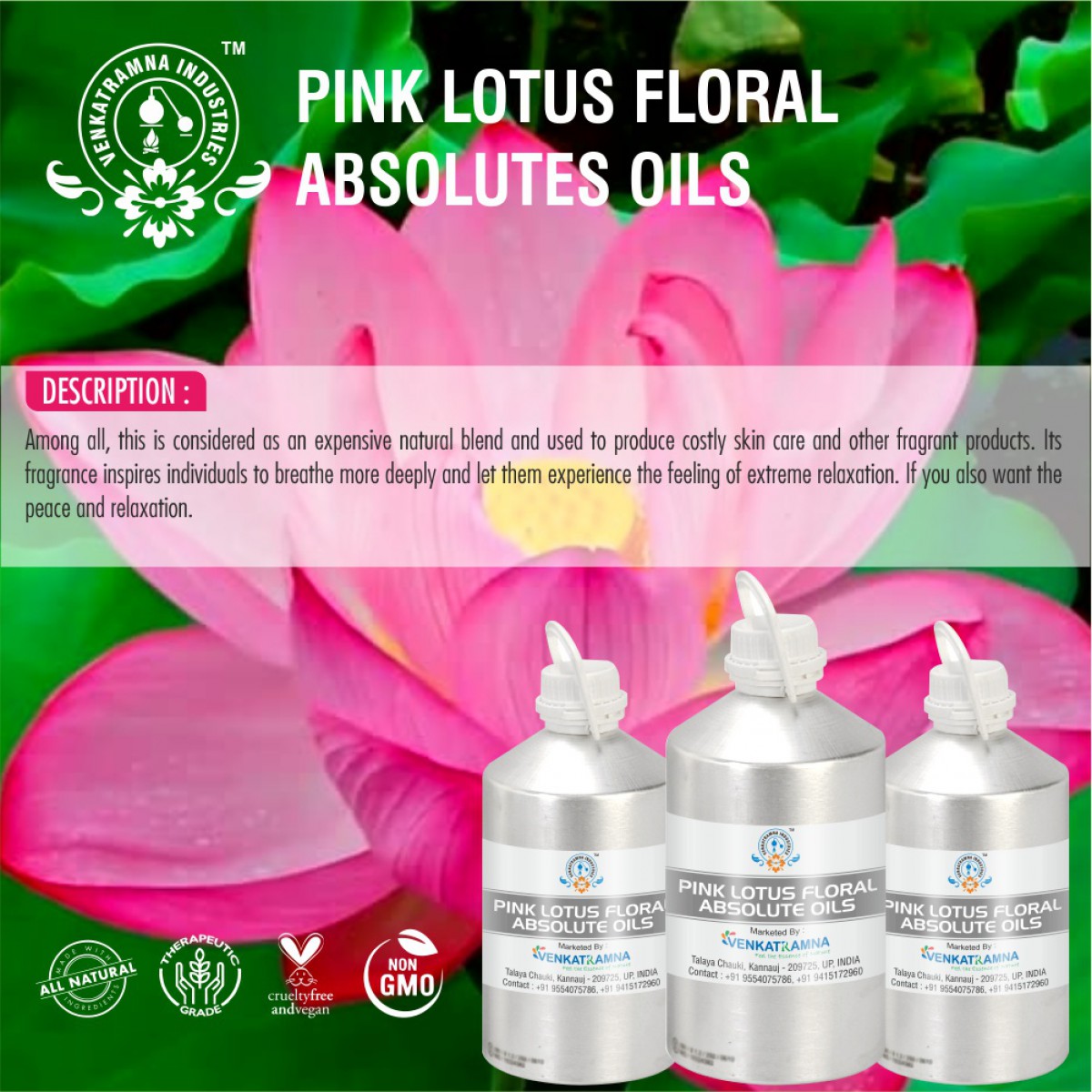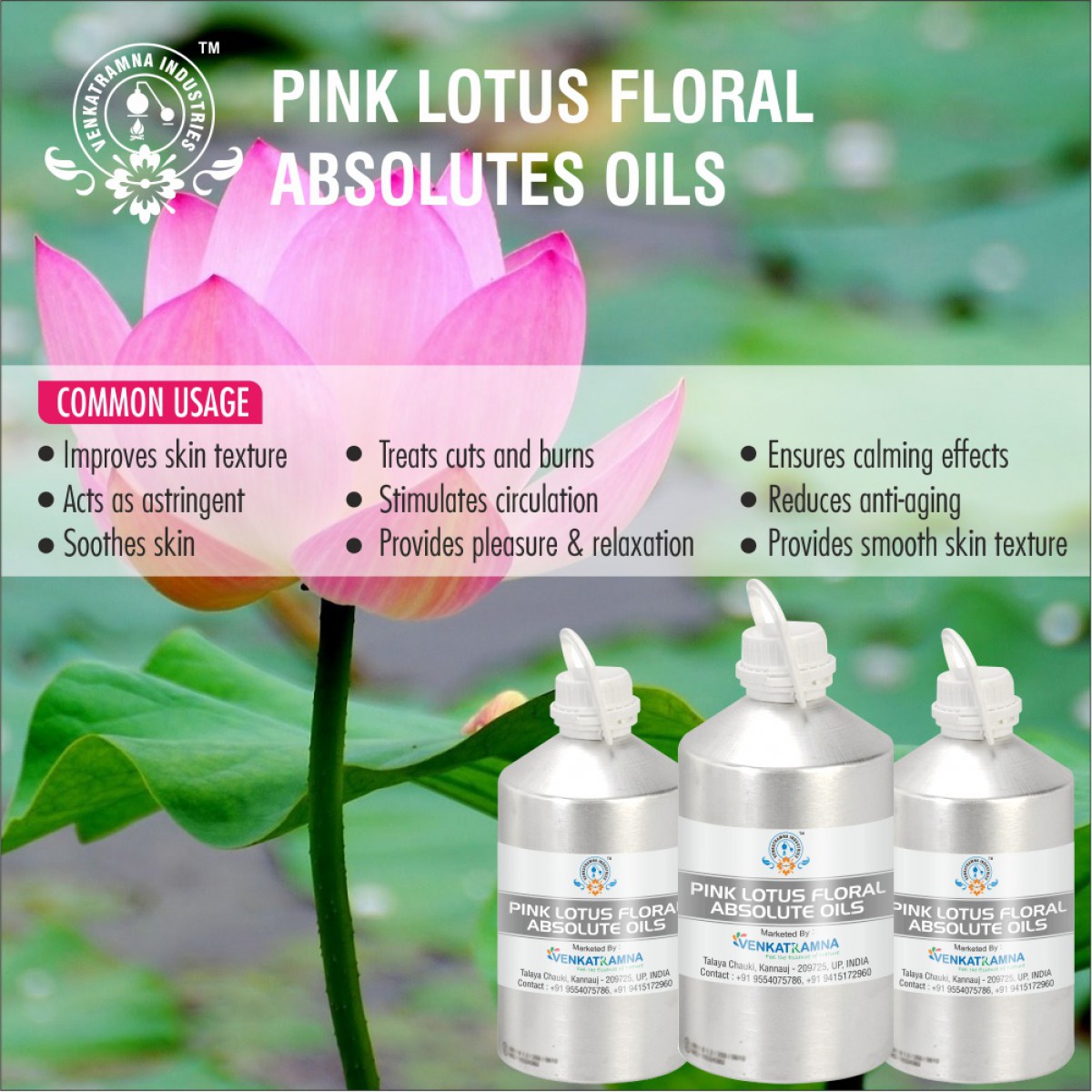 These days’ different parts of lotus have been consumed as functional foods. Thus, lotus can be regarded as a potential nutraceutical source. In natural perfumery used in sacred perfumes, Oriental bouquets, fougere, chypre, amber bases, high class florals.