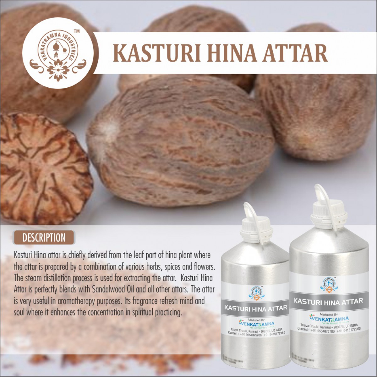 Botanical Name: Myristica fragrance Common name: Kasturi-Hina Attar Read More