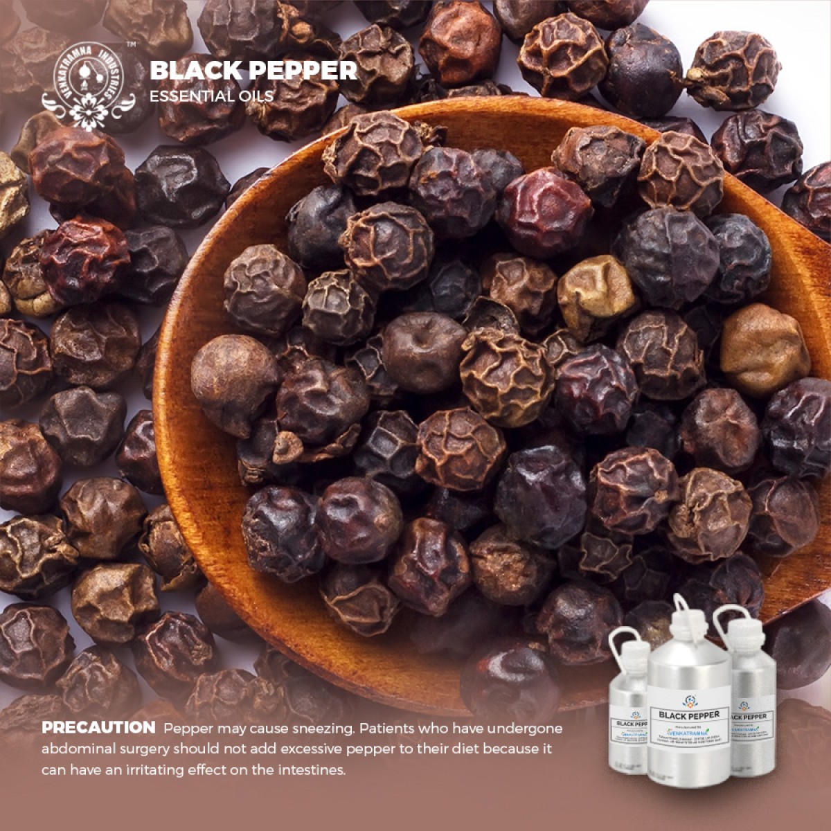Therapeutically, Black Pepper essential Oil is popularly known improve circulation and can help to ease the pain of aching muscles. It is traditionally popular for its culinary applications that account for its numerous health benefits. It is best known for its ability to spice up meals and enhance the taste of foods.
