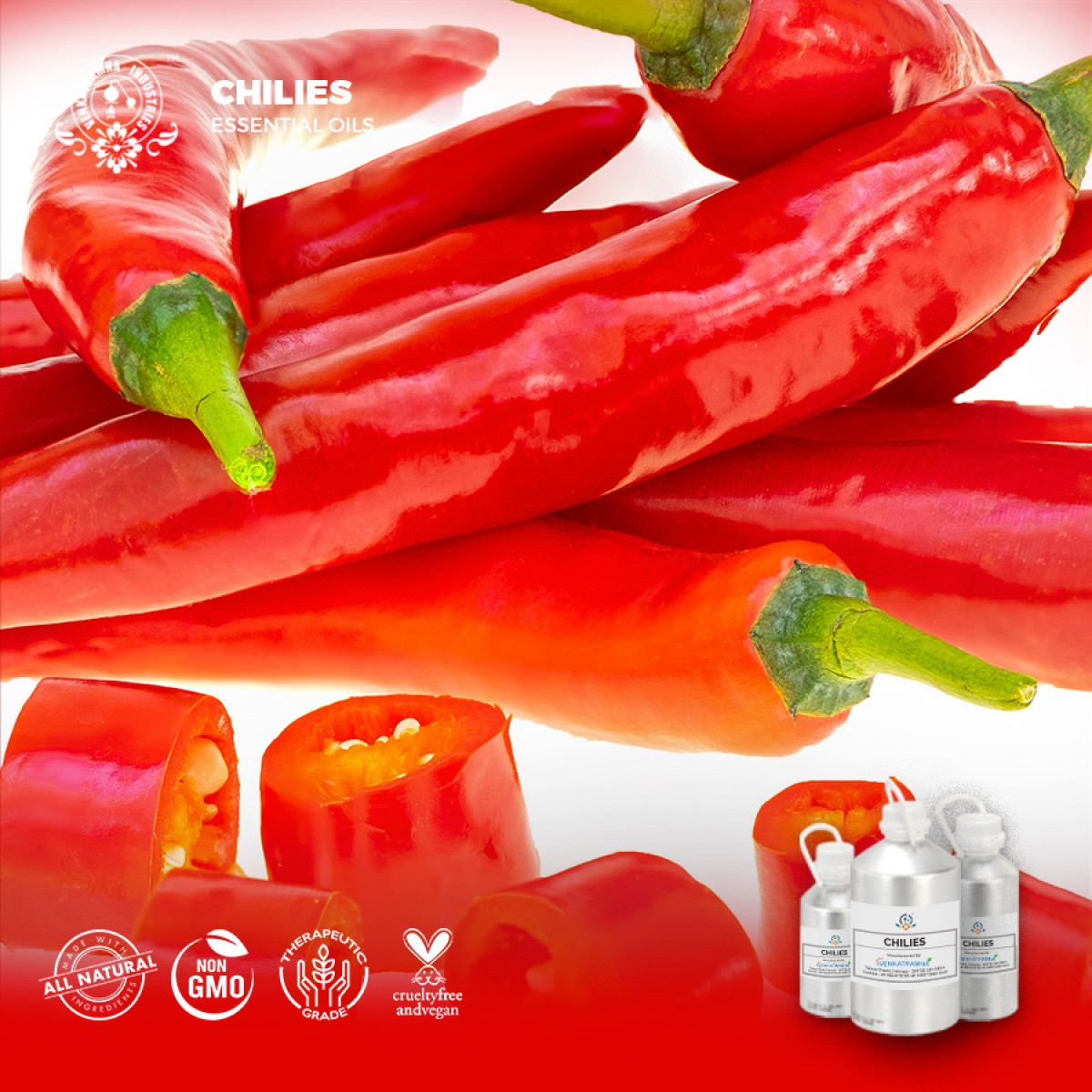 Chili seed essential oil is a unique addition to cosmetic applications, personal care formulations, soaps, perfumery, incense, candles, and aromatherapy.