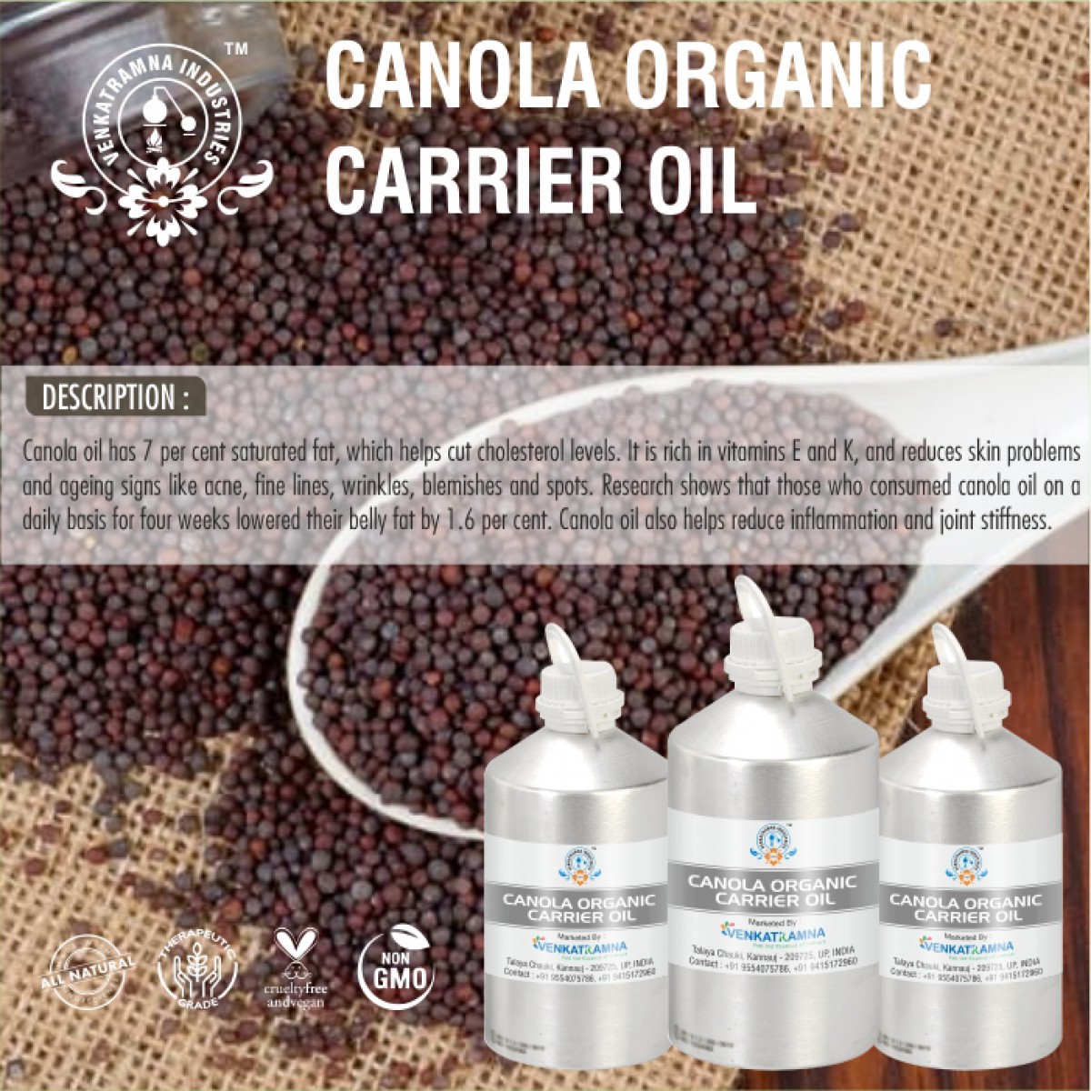 Venkatramna’s carrier Oils are extracted from the Cold Pressed method to retain