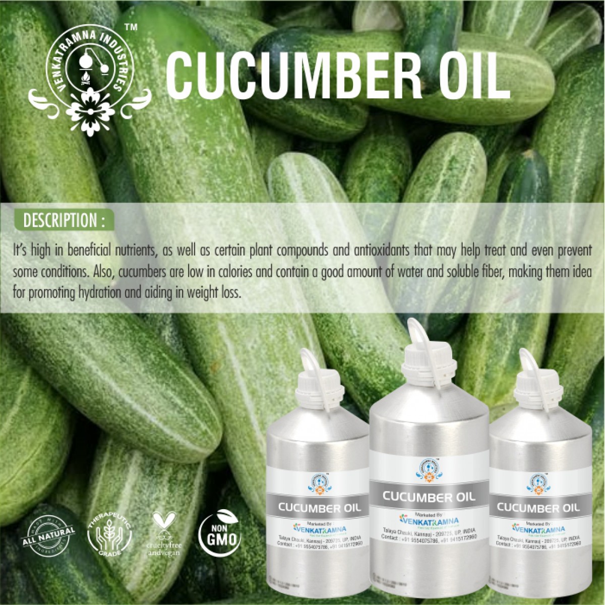 To be used in aromatherapy, it is recommended that the oil is obtained through cold pressing. In this process, the oil is extracted by crushing the plants. Users claim that the fragile nutrients in the oil can be damaged if they are extracted with heat. Venkatramna’s carrier Oils are extracted from the Cold Pressed method to retain their properties.