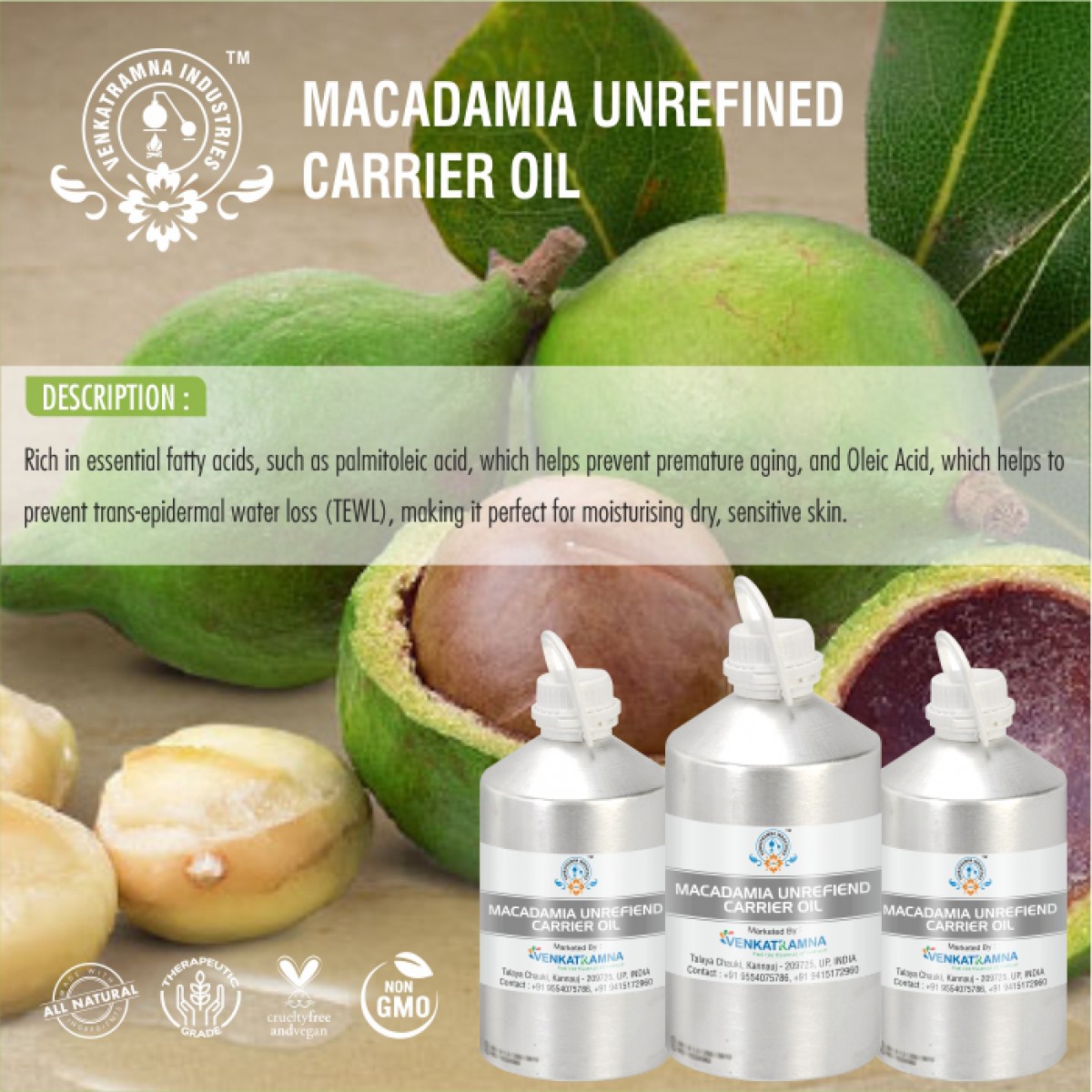 Macadamia Nut Unrefined Carrier Oil