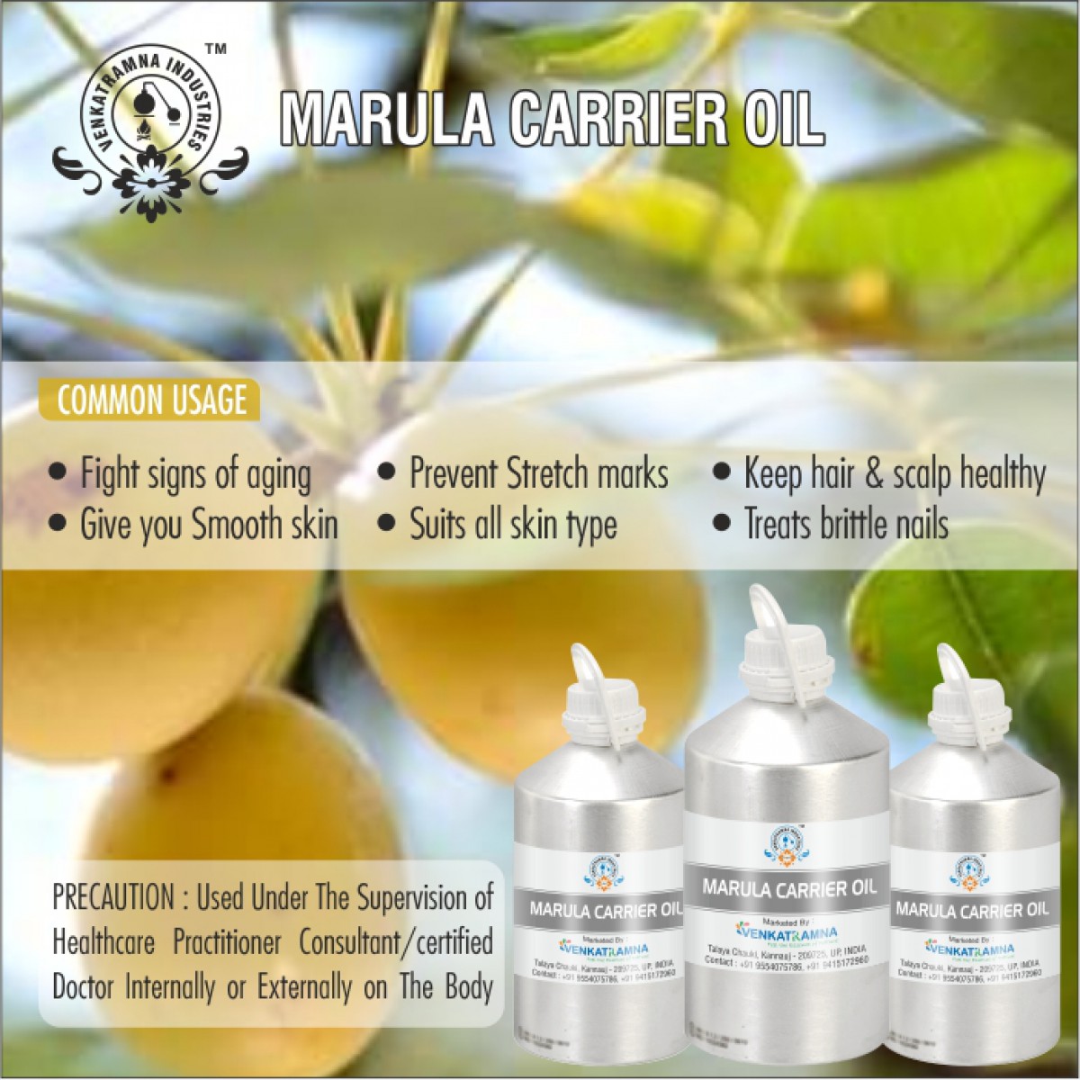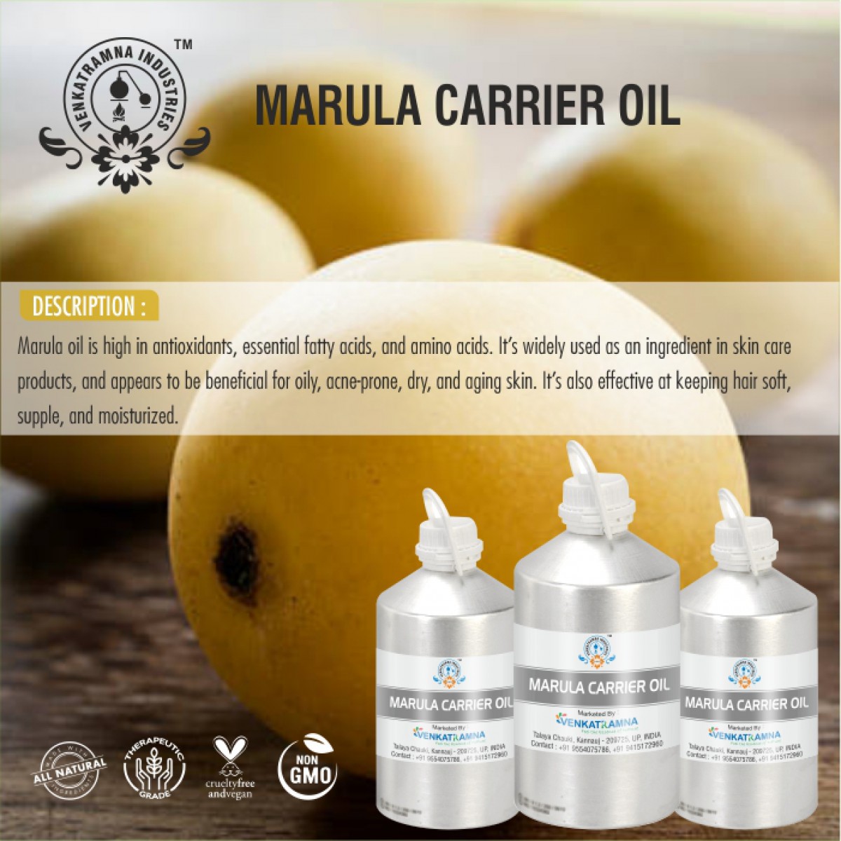 To be used in aromatherapy, it is recommended that the oil is obtained through cold pressing. In this process, the oil is extracted by crushing the plants. Users claim that the fragile nutrients in the oil can be damaged if they are extracted with heat. Venkatramna’s carrier Oils are extracted from the Cold Pressed method to retain their properties.