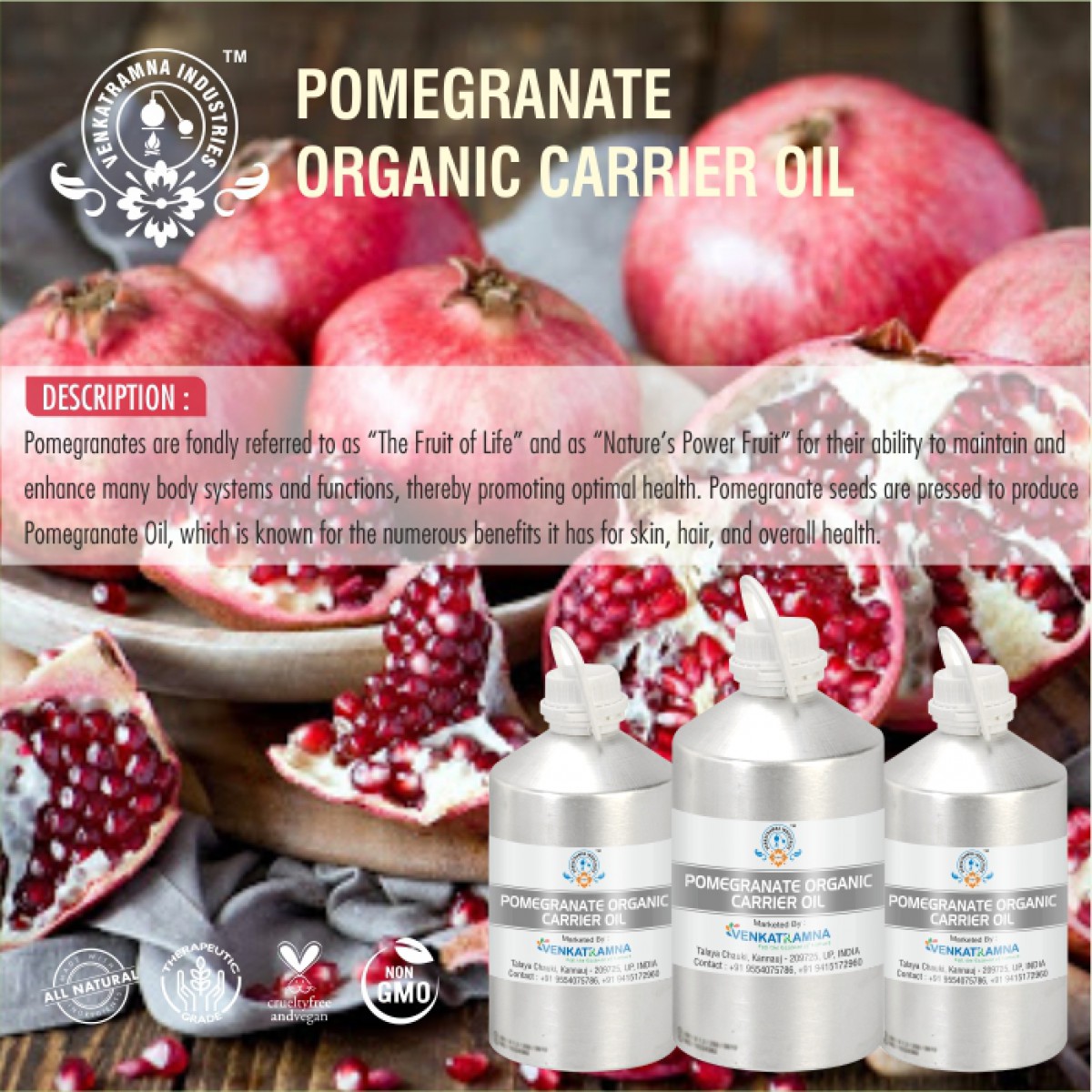 To be used in aromatherapy, it is recommended that the oil is obtained through cold pressing. In this process, the oil is extracted by crushing the plants. Users claim that the fragile nutrients in the oil can be damaged if they are extracted with heat. Venkatramna’s carrier Oils are extracted from the Cold Pressed method to retain their properties.