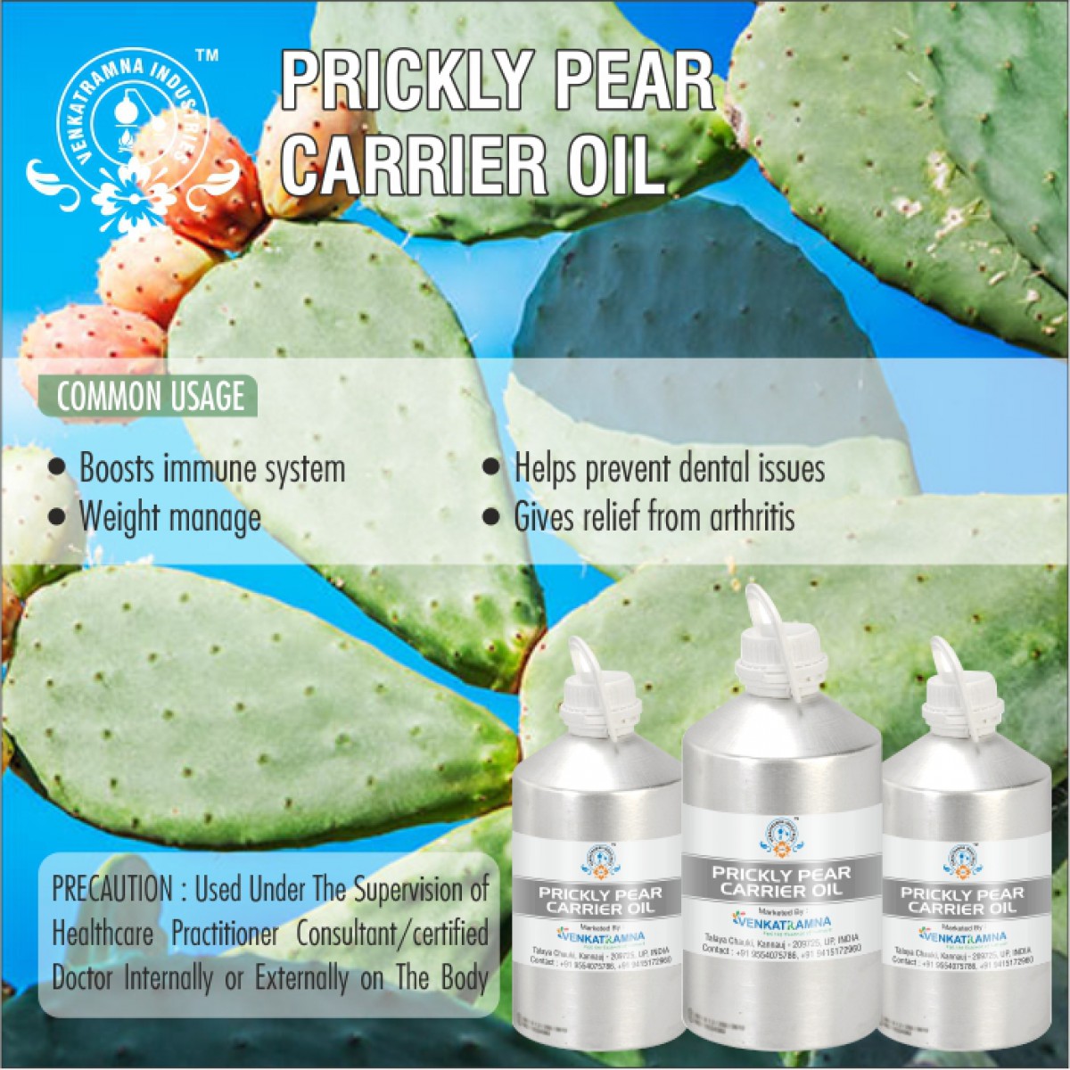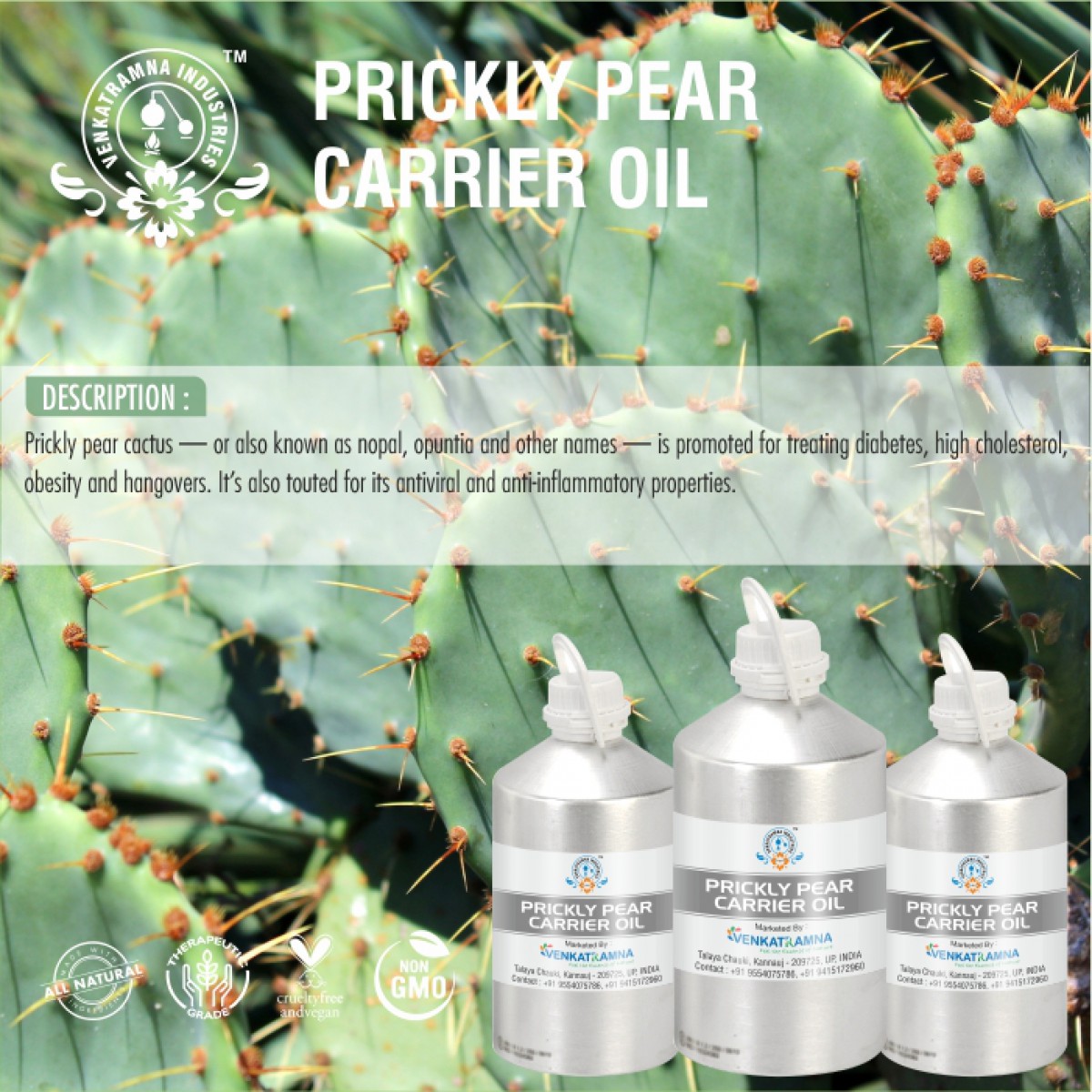 Prickly pear seed oil is rich in essential fatty acids and natural antioxidants like vitamin E that stimulate collagen production to promote faster cell turnover. Also, it contains vitamin K which promotes the skin’s elasticity and brightens under eye dark circles. It gives skin an instant boost of glow and radiance by helping in smoothing fine lines, dark spots, and environmental stress on the skin. It keeps the skin infused with a lot of moisture so that your skin never runs out of it and likewise preventing it from dryness and chapping. It works as a great cleanser of acne-prone skin.