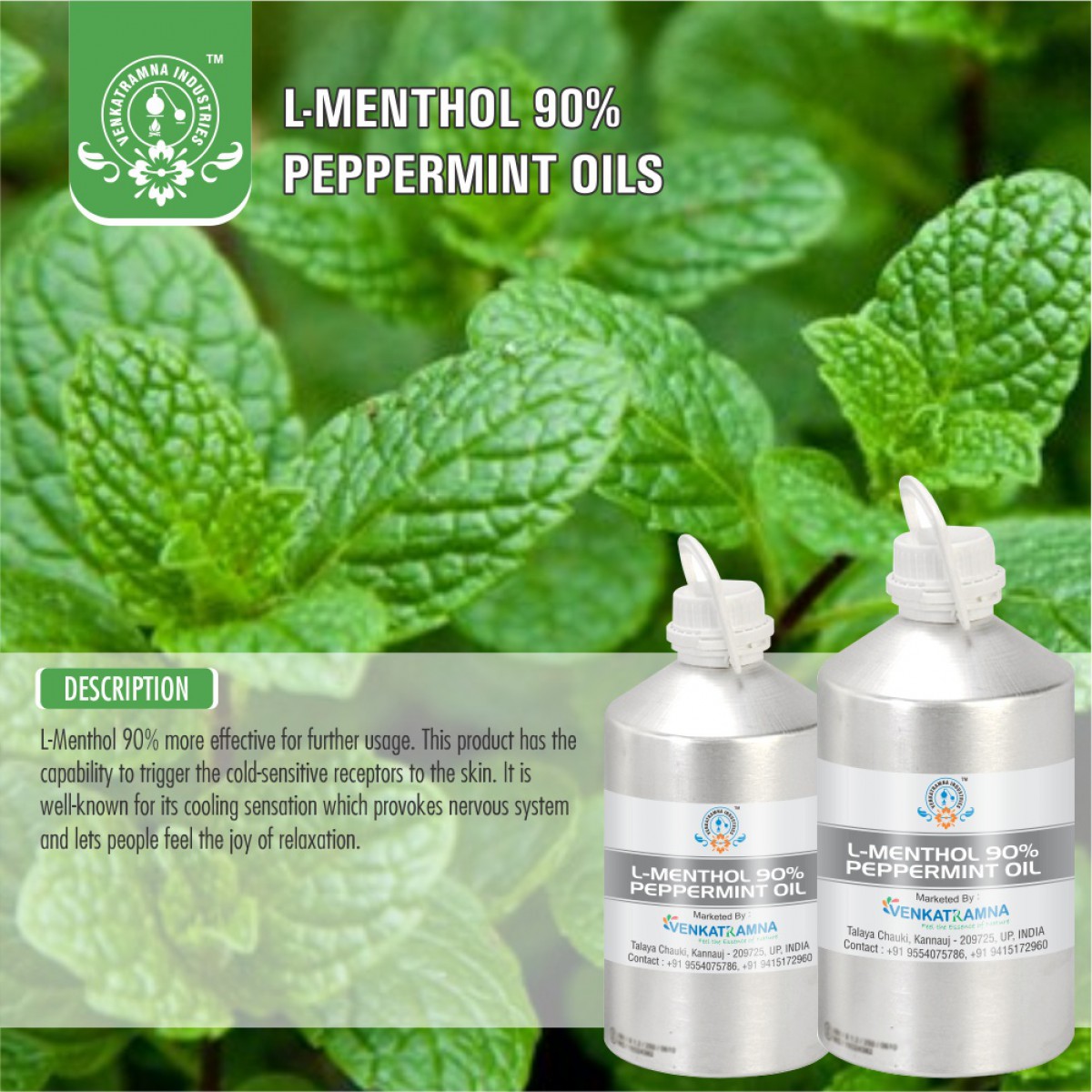 pharmaceutical, perfumery, and food industries. Menthol is antiseptic,