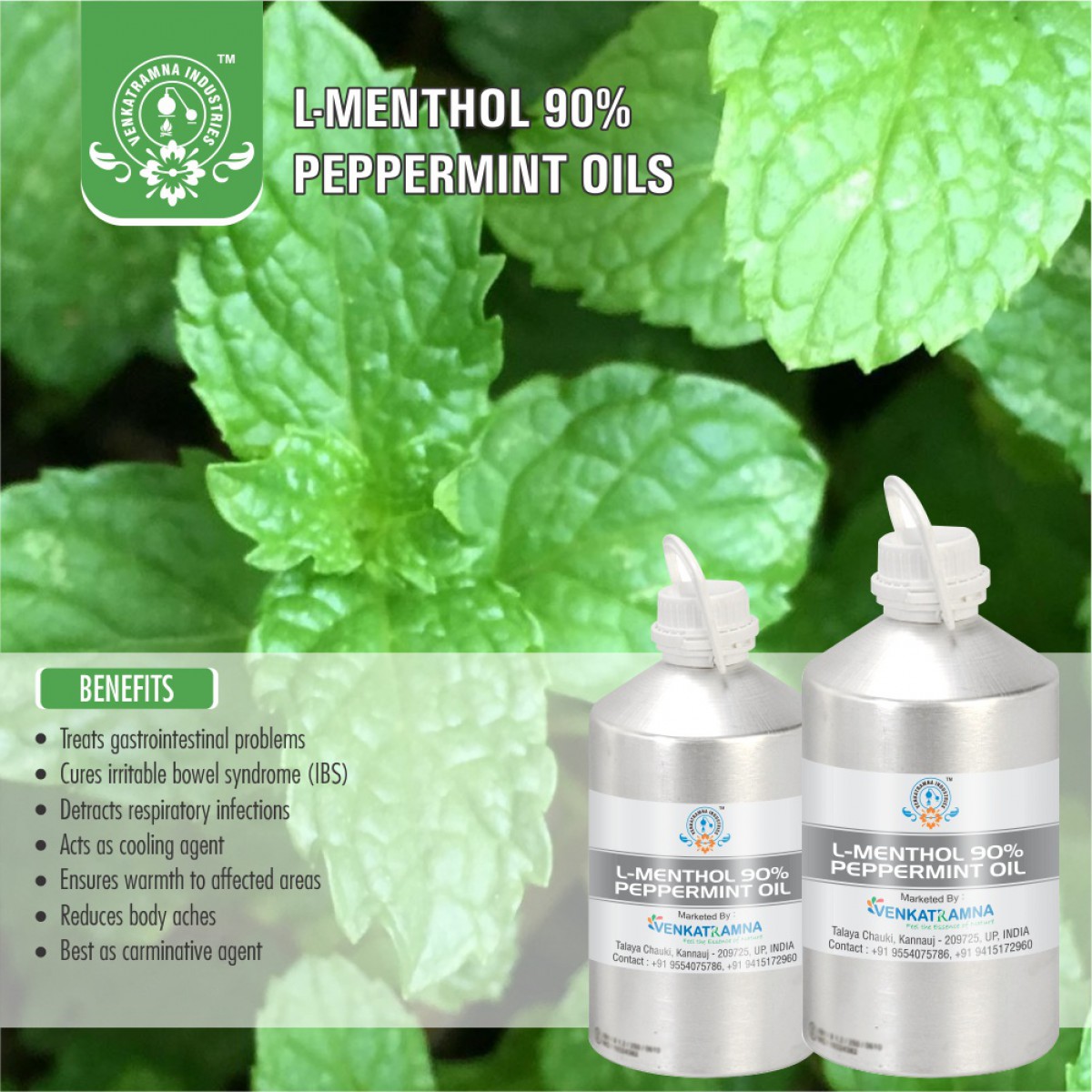 of the Field Mint or Pudina plants using the steam distillation process. The