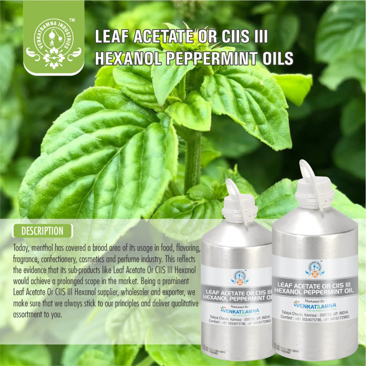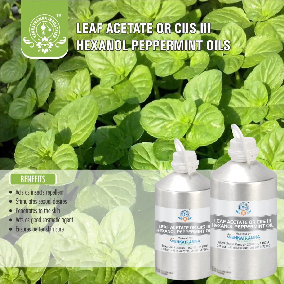 of the Field Mint or Pudina plants using the steam distillation process. The
