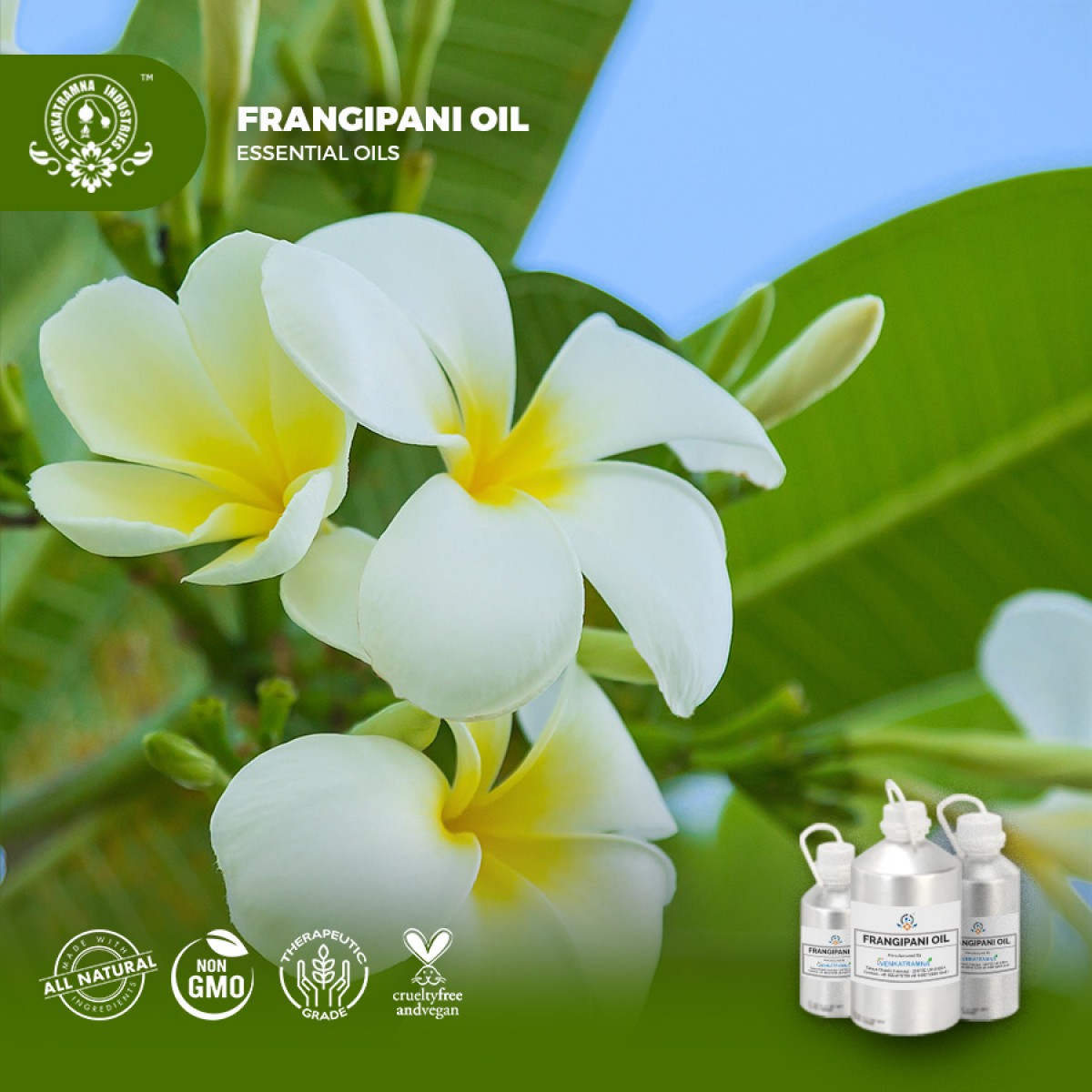 Natural Frangipani oil is highly regarded in Ayurveda for centuries for its healing powers. Frangipani essential oil has a important place in aromatherapy due to the scent’s rejuvenating qualities for the mind and body. it is believed to effects deep internal cleansing that refreshes the Mind, body and soul.
